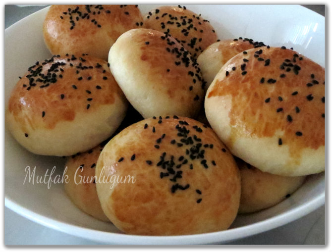 Hamurunuz hazır hale gelince ceviz büyüklüğünde parçalar kopartıp elinizle hafifce bastırarak yuvarlayın. Ben iç olarak peynirli olanı hazırladım. Ortasına peynirli içi koyarak kenarları birleştirip yuvarlayın.Yağlı kağıt serilmiş tepsiye dizip üzerlerine yumurta sarısı sürüp çörek otu serpiştirin. Tepside de tekrar kabarıncaya kadar yaklaşı bir 20-30 dk kadar daha bekletin. Ben topları biraz büyük yaptım yaklaşık 24 adet çıktı ama boyutlarını tercihinize göre ayarlayabilirsiniz.